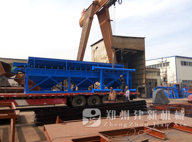 安博电竞制造有限公司货场上,一台PLD1600三仓砂石配料机正在做着最后的检验工作,准备发货。据了解,这台PLD1600砂石配料机与前两天发出的JS1000混凝土搅拌机是同一批设备,为一套HZS60混凝土搅拌站。
